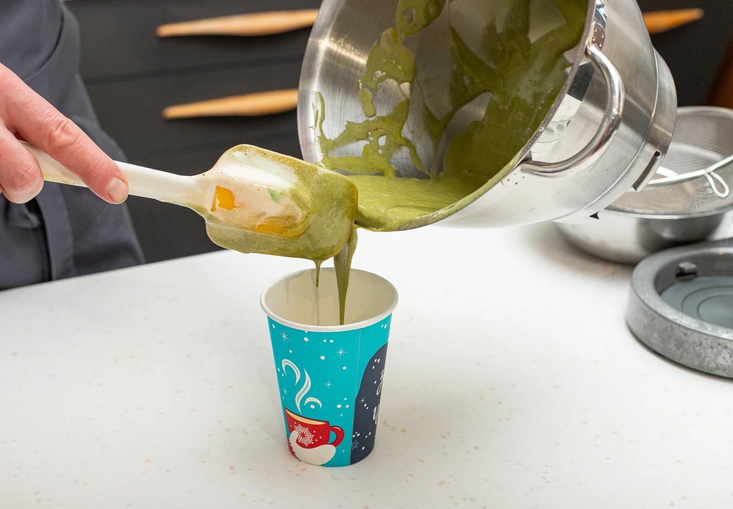 Тесто выложите в бумажные или пластиковые стаканчики, заполнив их примерно на ⅓.