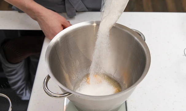 Яйца взбейте добела с ванильным и обычным сахаром.