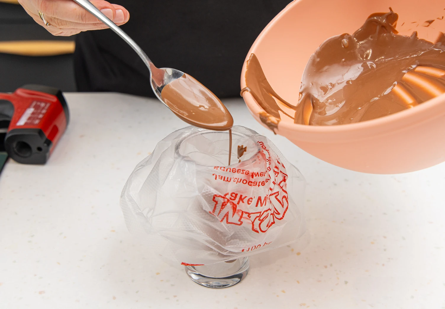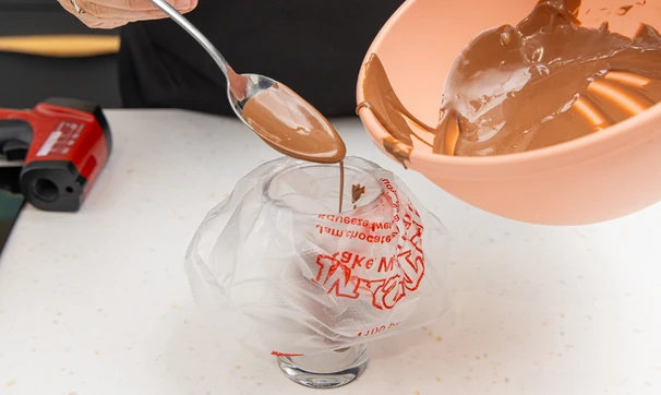 Растопите 120 г шоколада на водяной бане или короткими импульсами по 10–15 секунд в микроволновке. На этом этапе важно не перегреть массу, оптимальная температура — 45–47 °C.
