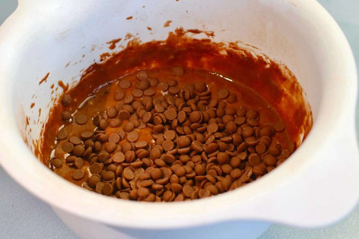 Добавьте нарубленный шоколад или капли. Перемешайте.