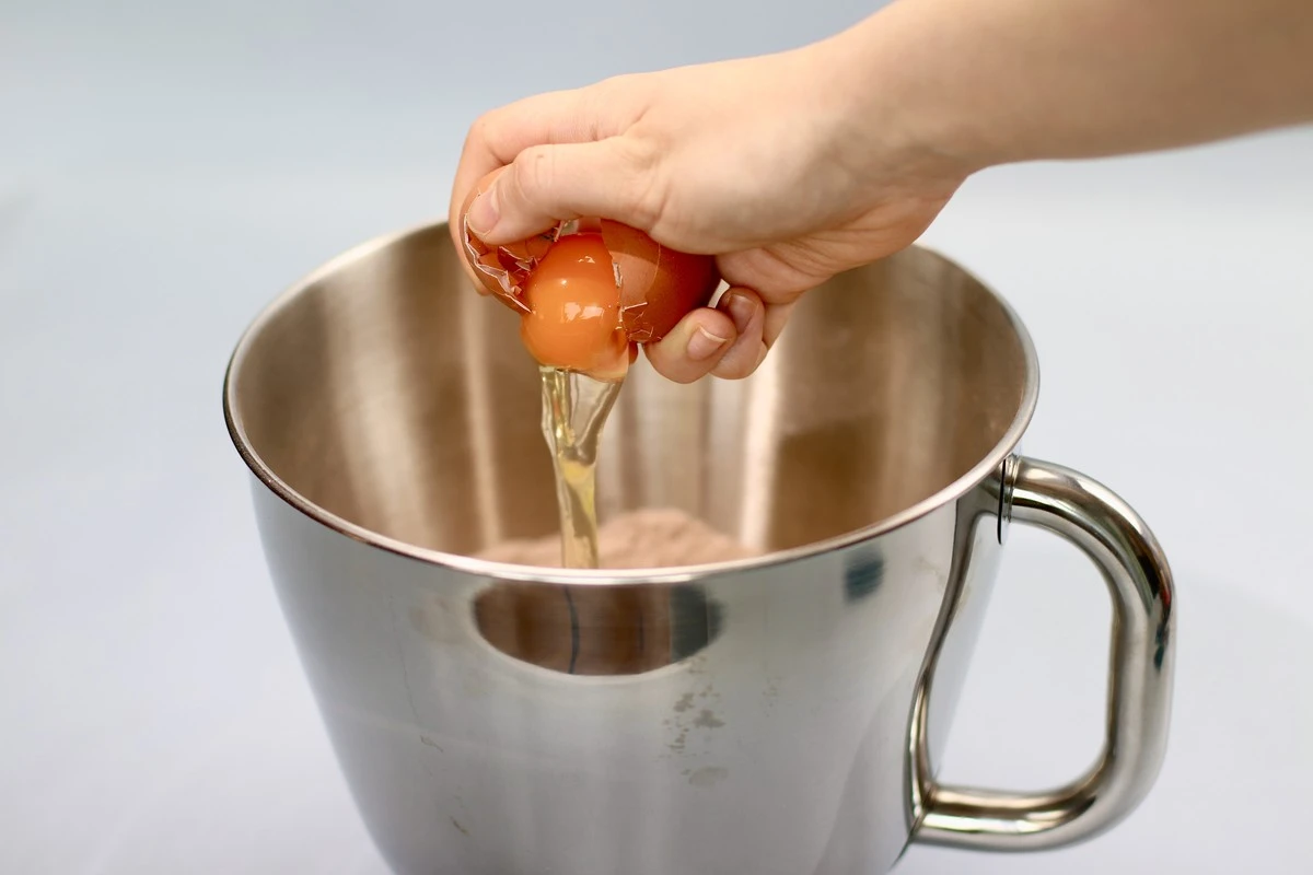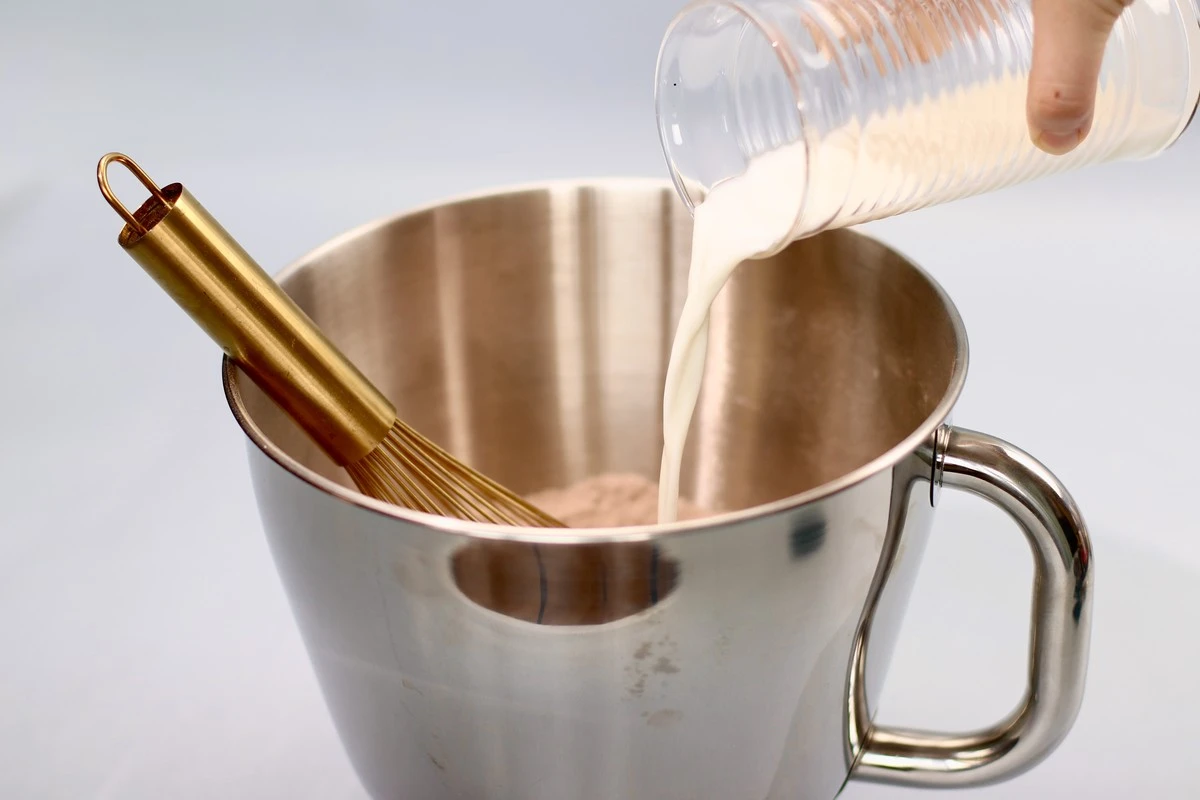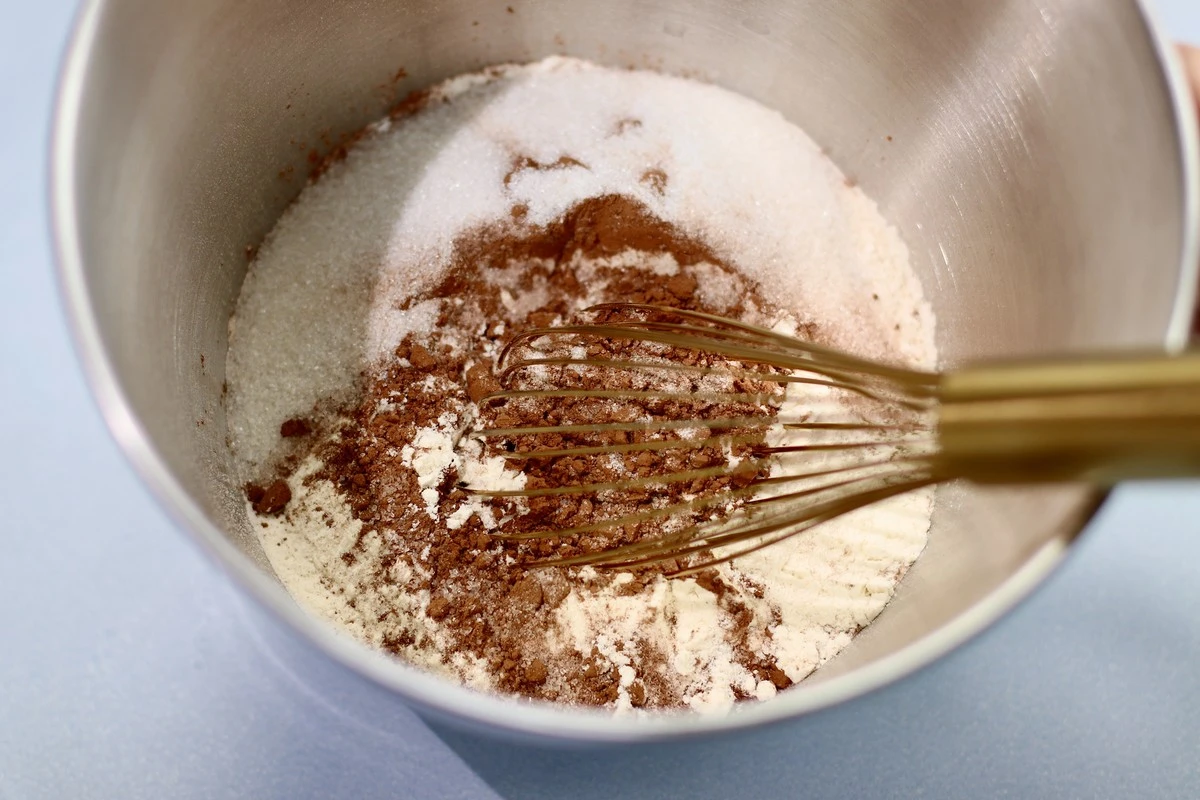 Смешайте сухие ингредиенты: муку, сахар, соль и какао.