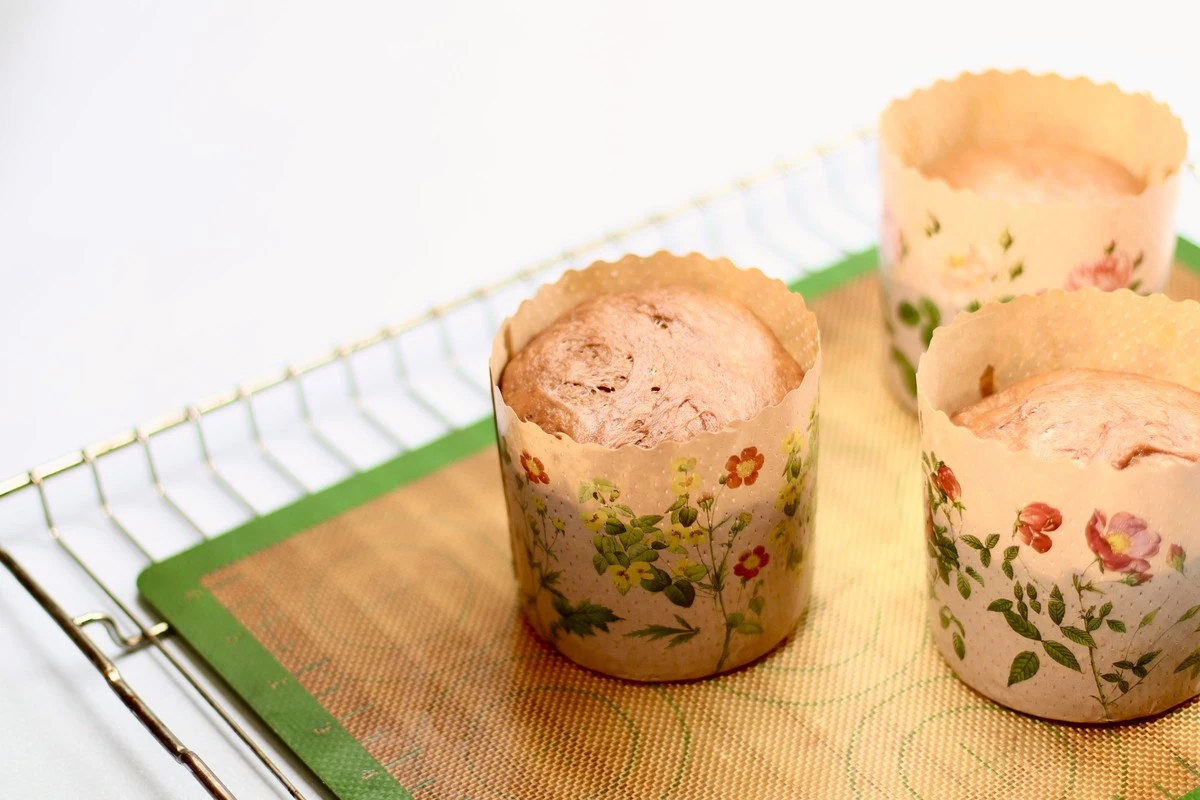 Распределите тесто по формам, заполнив их на ⅓. Оставьте на расстойку ещё на час.