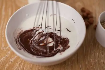 Дайте шоколаду чуть-чуть остыть и смешайте венчиком с йогуртом.