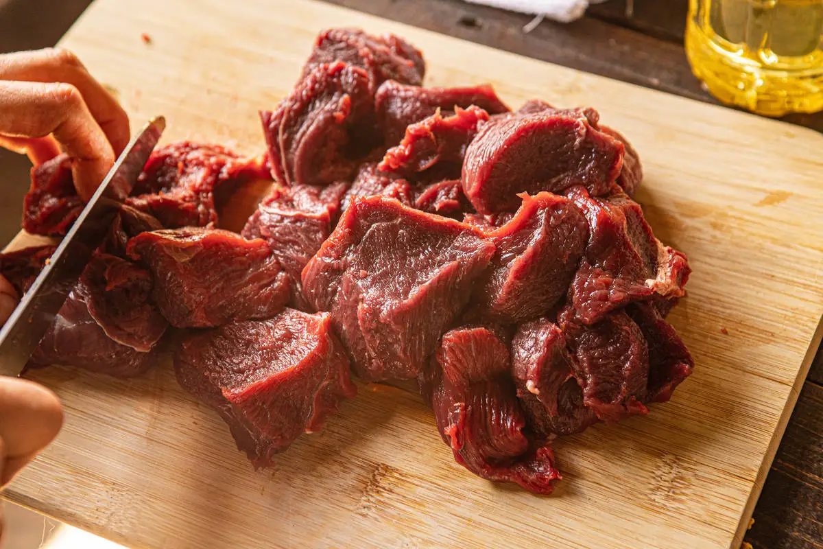 В казане или котелке разогрейте масло и обжарьте мясо до золотистой корочки.