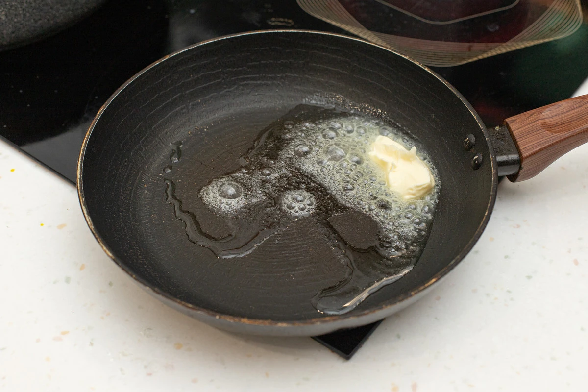 Разогрейте сковороду, добавьте сливочное масло.