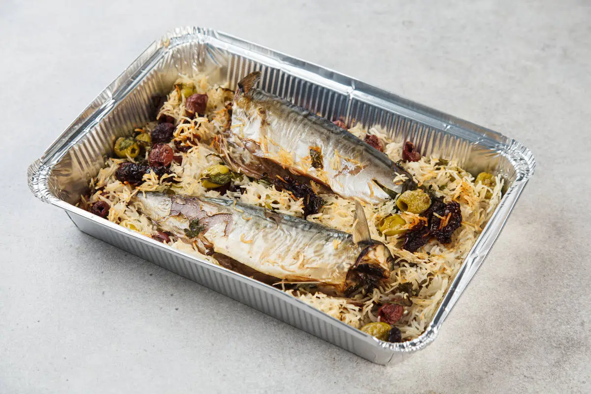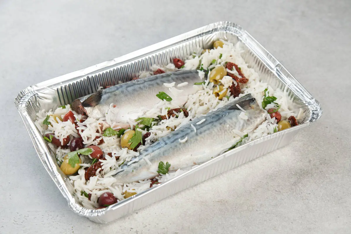Рецепт «Скумбрия с рисом, вялеными томатами и оливками»