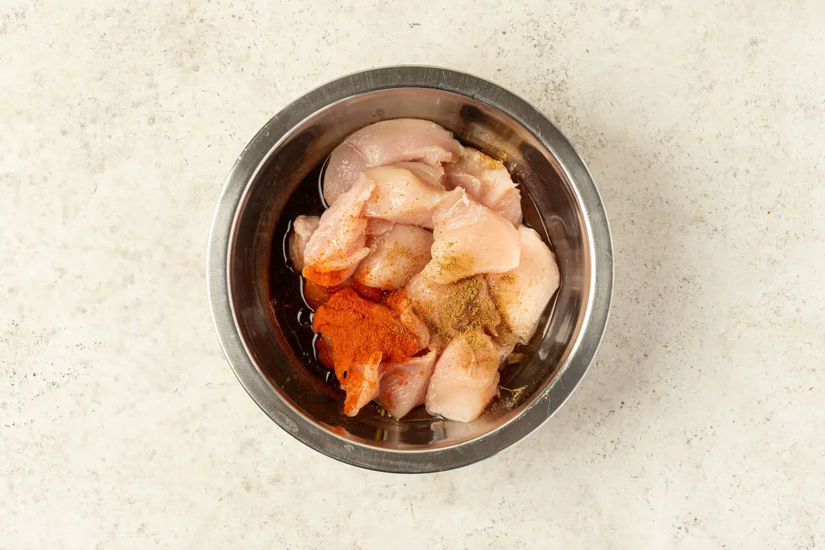 Выдавите сок из половинки лайма, перемешайте и оставьте мариноваться на 10-15 минут при комнатной температуре.