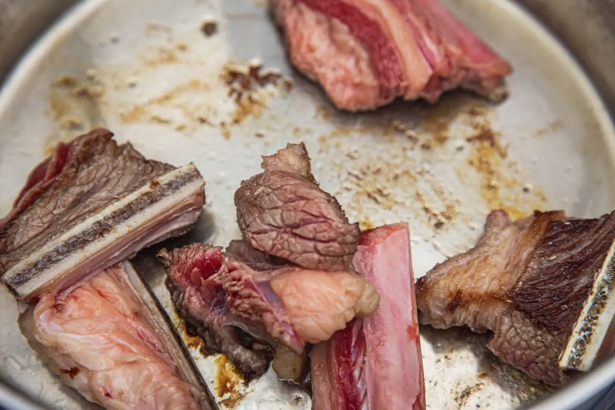 Рёбра обжарьте на растительном масле в кастрюле с двух сторон.