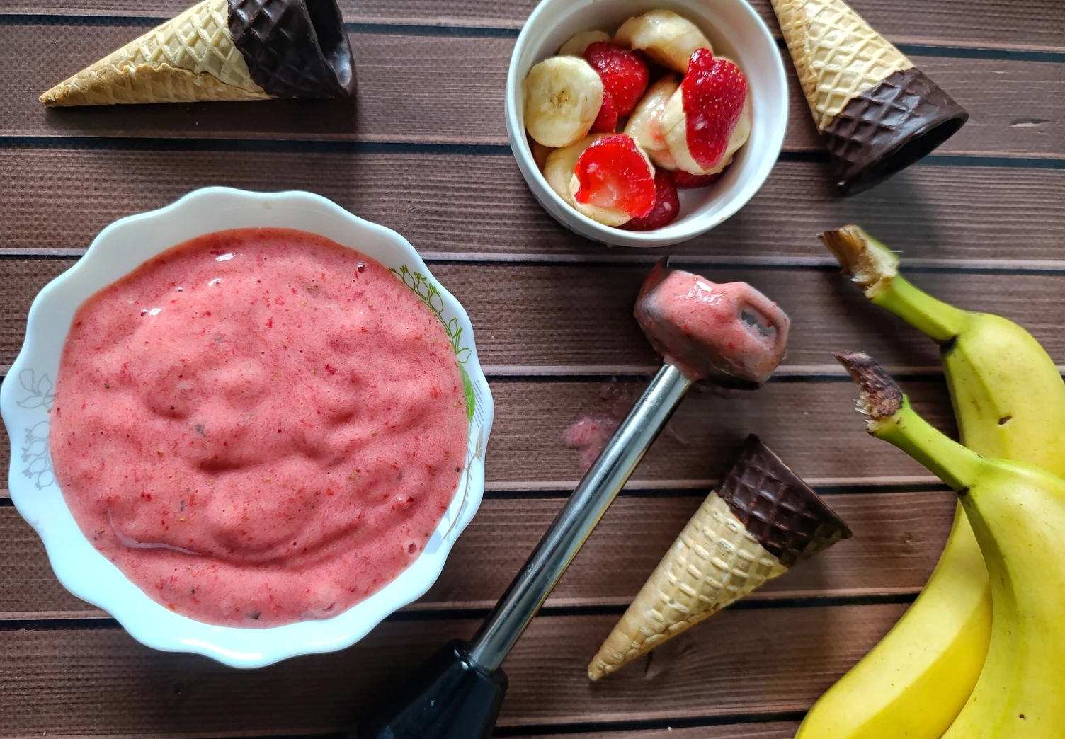 Лето — идеальное время для простых, натуральных и освежающих десертов. Этот сорбет из клубники и банана по рецепту от нашей покупательницы Татьяны Балакиревой готовится всего за 5 минут и обязательно порадует как детей, так и взрослых.
