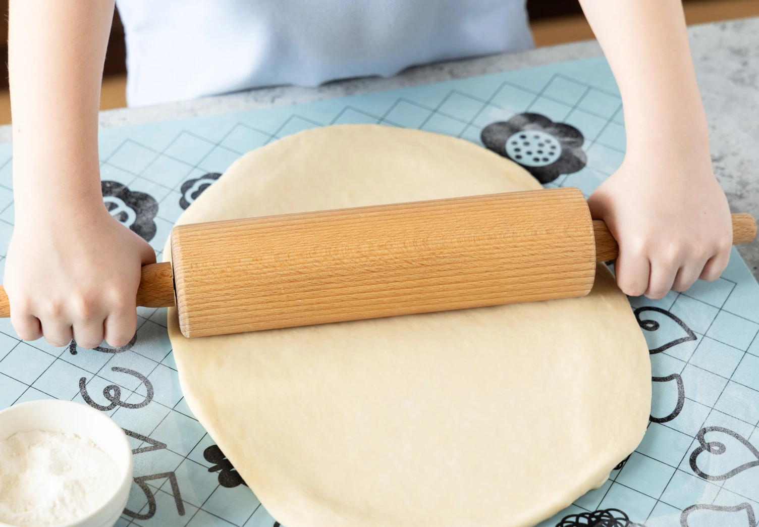 Слегка присыпьте рабочую поверхность мукой и раскатайте тесто в прямоугольный пласт размером примерно 25 х 45 см. Разрежьте его вдоль пополам, а затем каждую половину — на полоски шириной примерно 4 см.