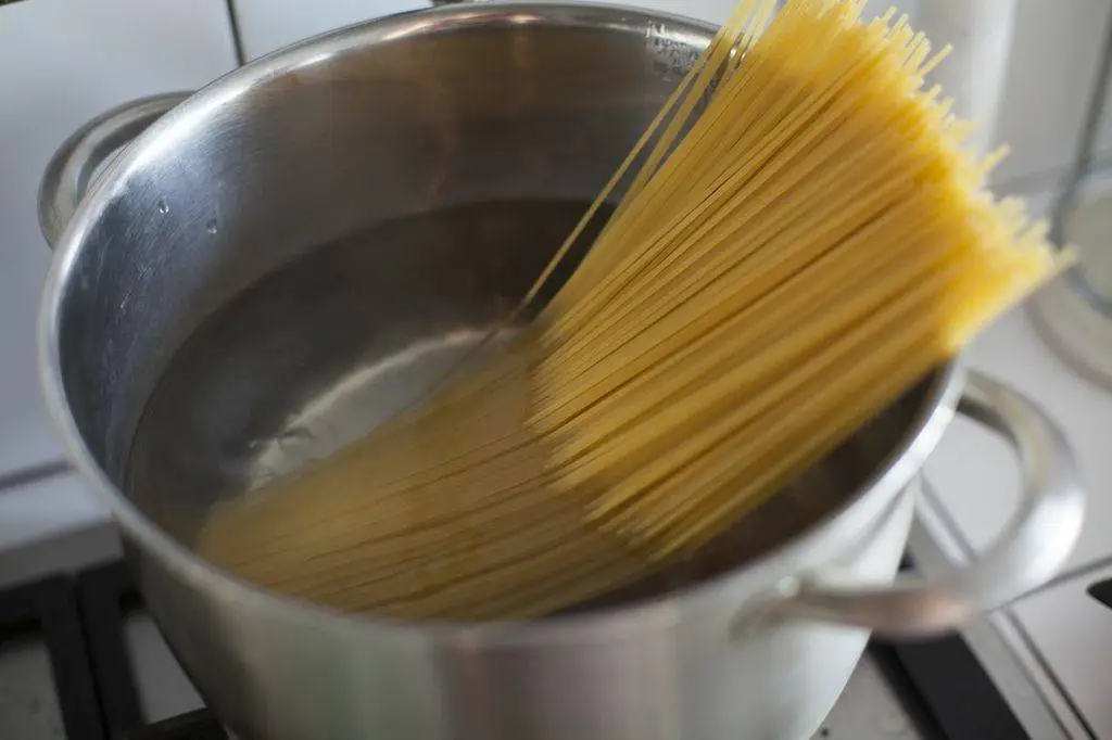 Спагетти отварите в большом количестве кипящей чуть-чуть подсоленной воды до состояния аль-денте.