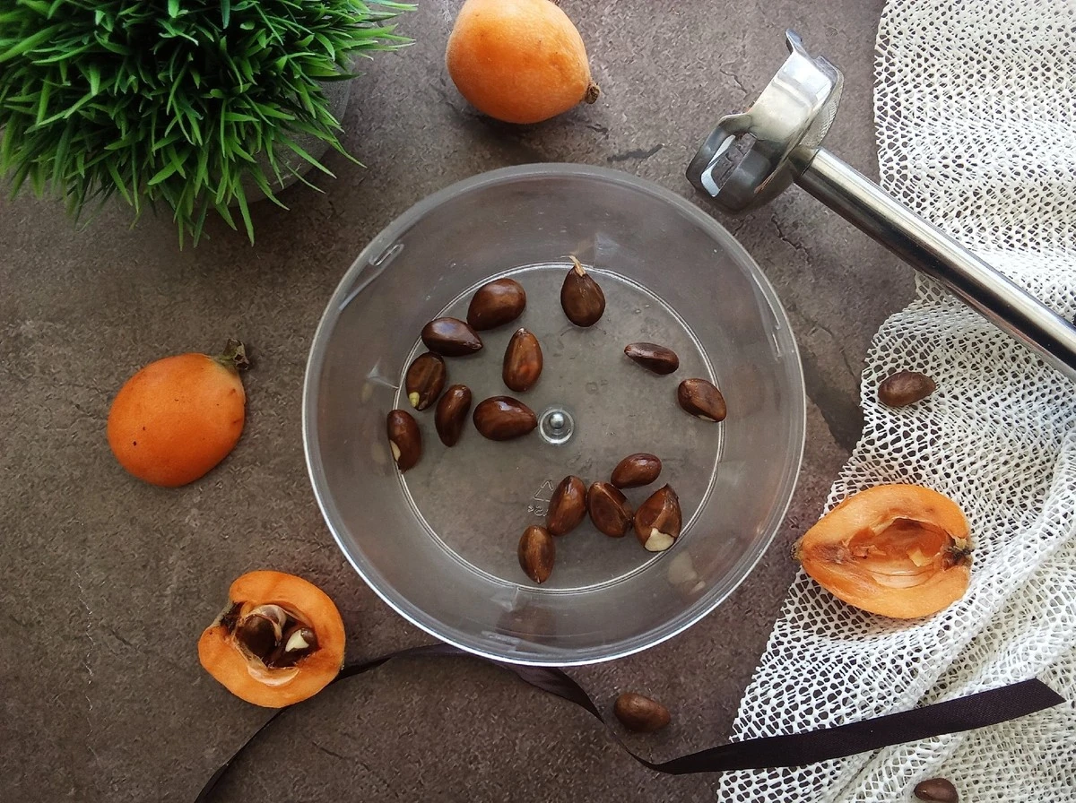 Насладитесь мякотью мушмулы, а косточки подсушите, затем измельчите их в блендере.