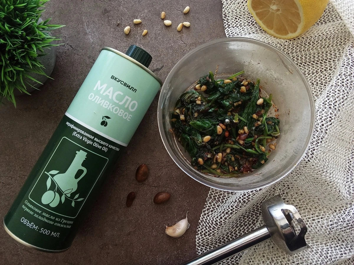 Остудите шпинатную смесь и измельчите её в блендере.