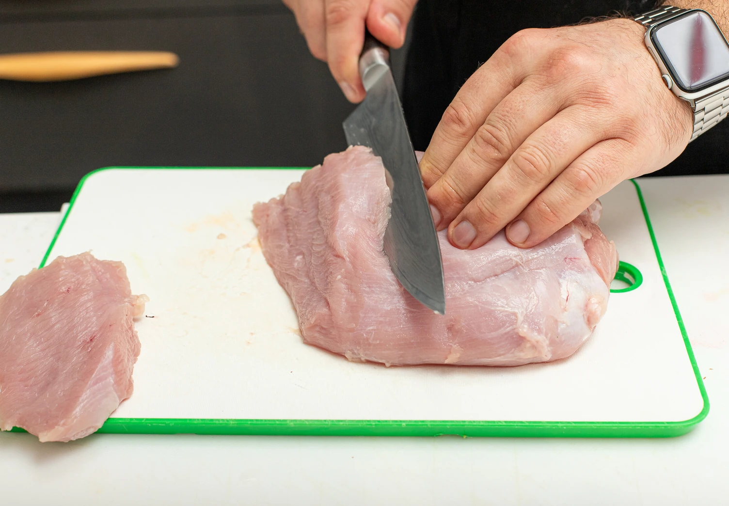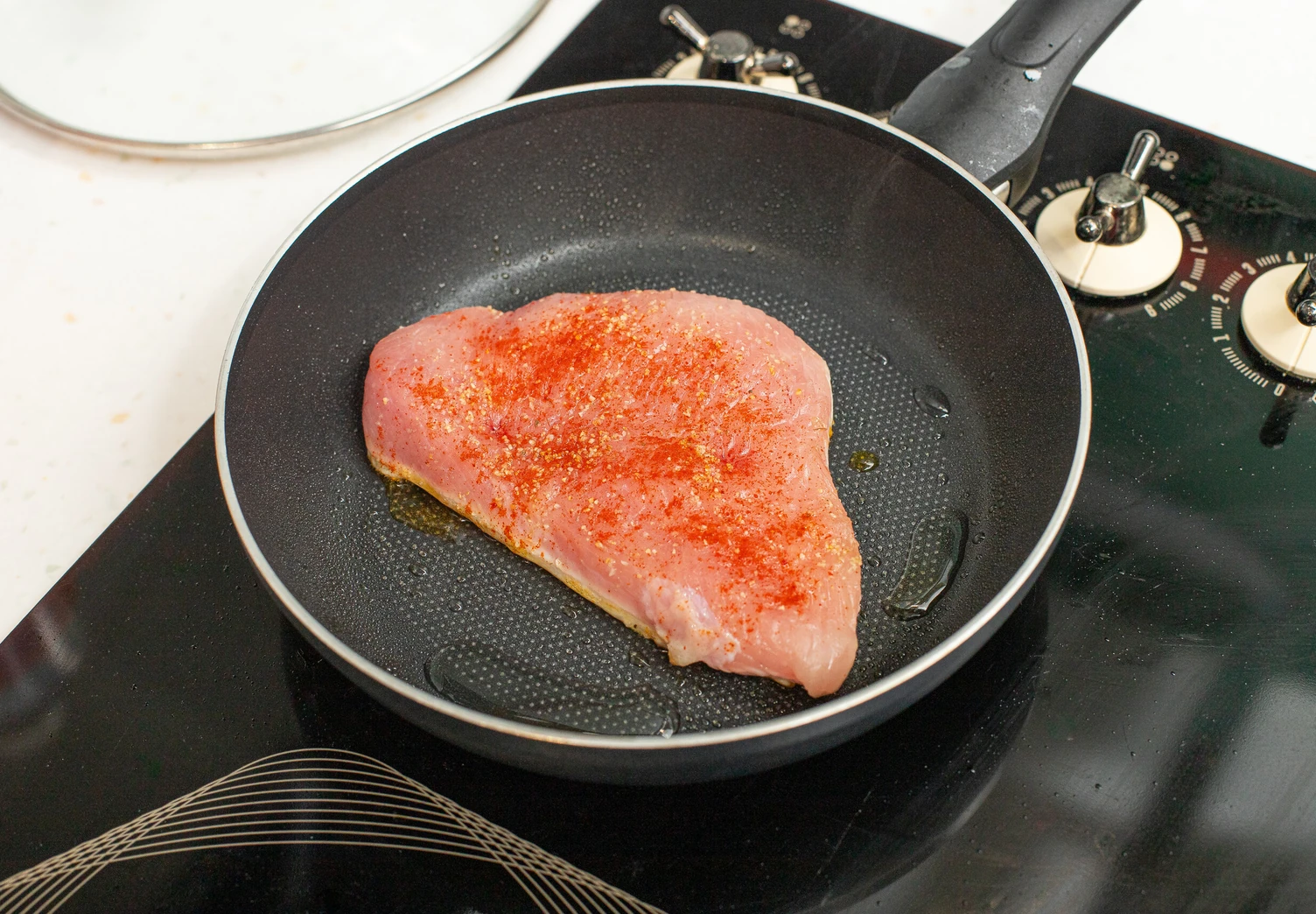 Натрите куски паприкой, чесноком, солью и обжарьте на растительном масле с двух сторон до готовности.