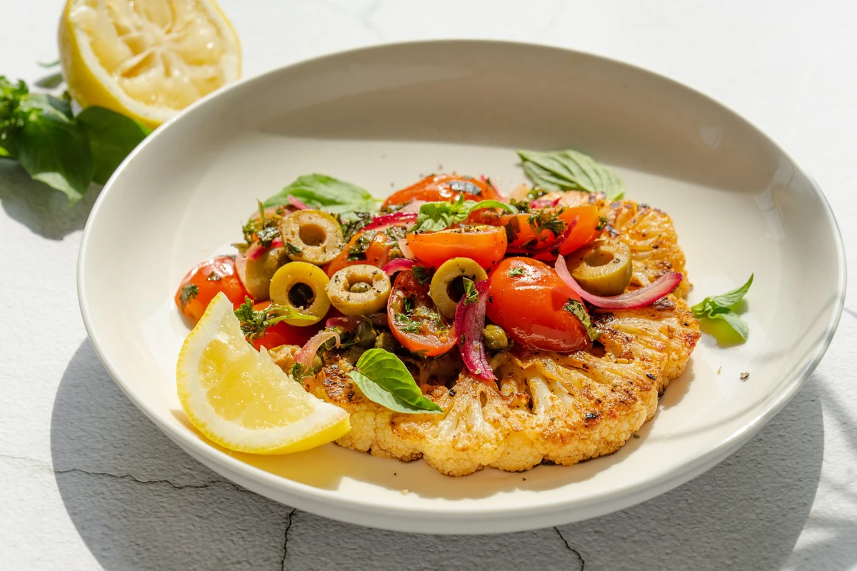 Стейк из цветной капусты с сальсой из томатов