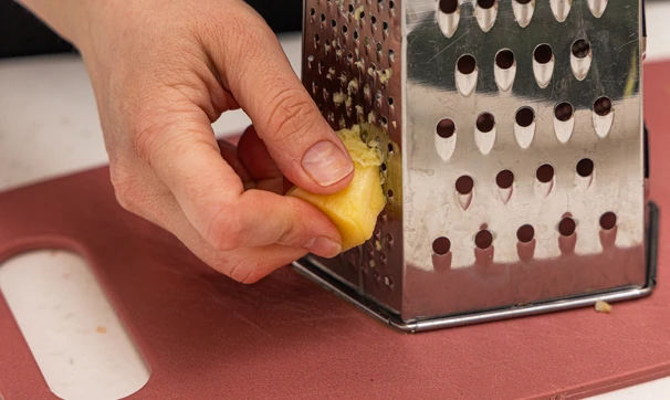 Для заправки имбирь очистите и натрите на мелкой тёрке.