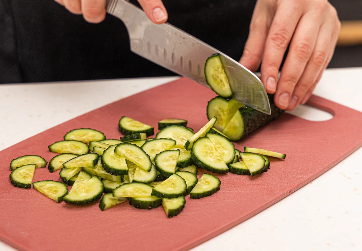 Морковь натрите тонкой соломкой, огурцы порежьте кружочками.