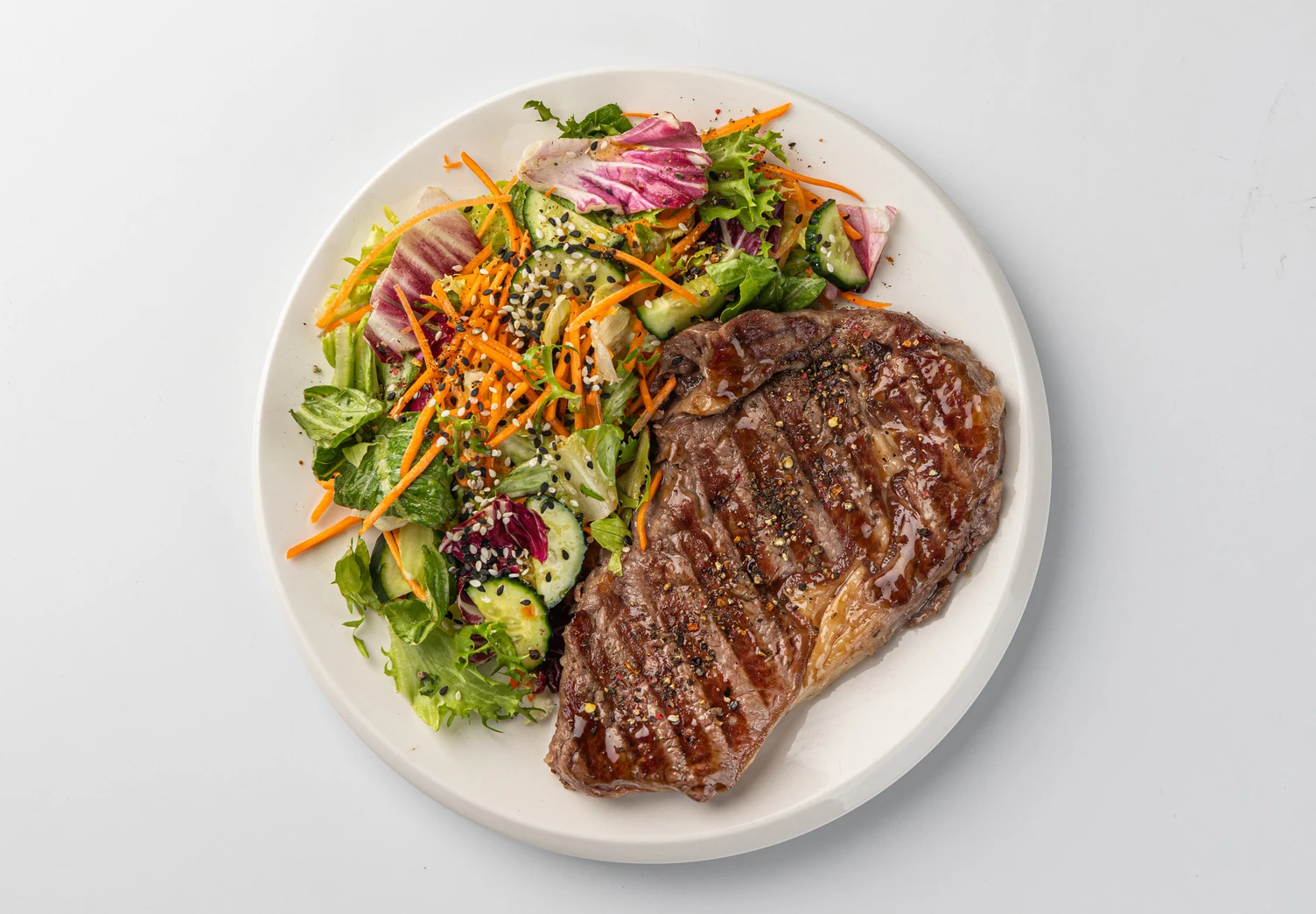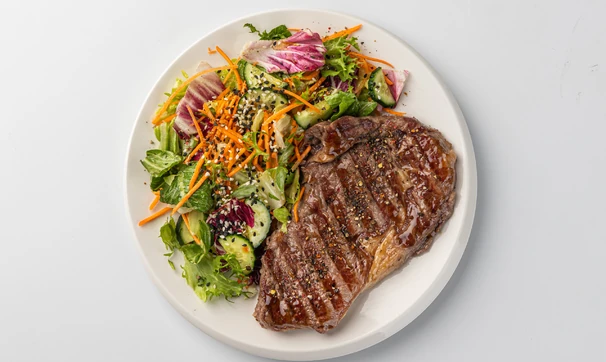Стейк с салатом в азиатском стиле
