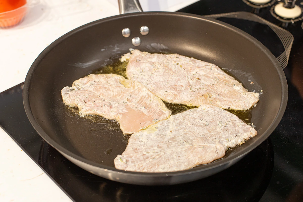 Разогрейте сковороду с оставшимся оливковым маслом. Выкладывайте стейки по 2-3 штуки за раз и обжаривайте по 1,5-2 минуты с каждой стороны.