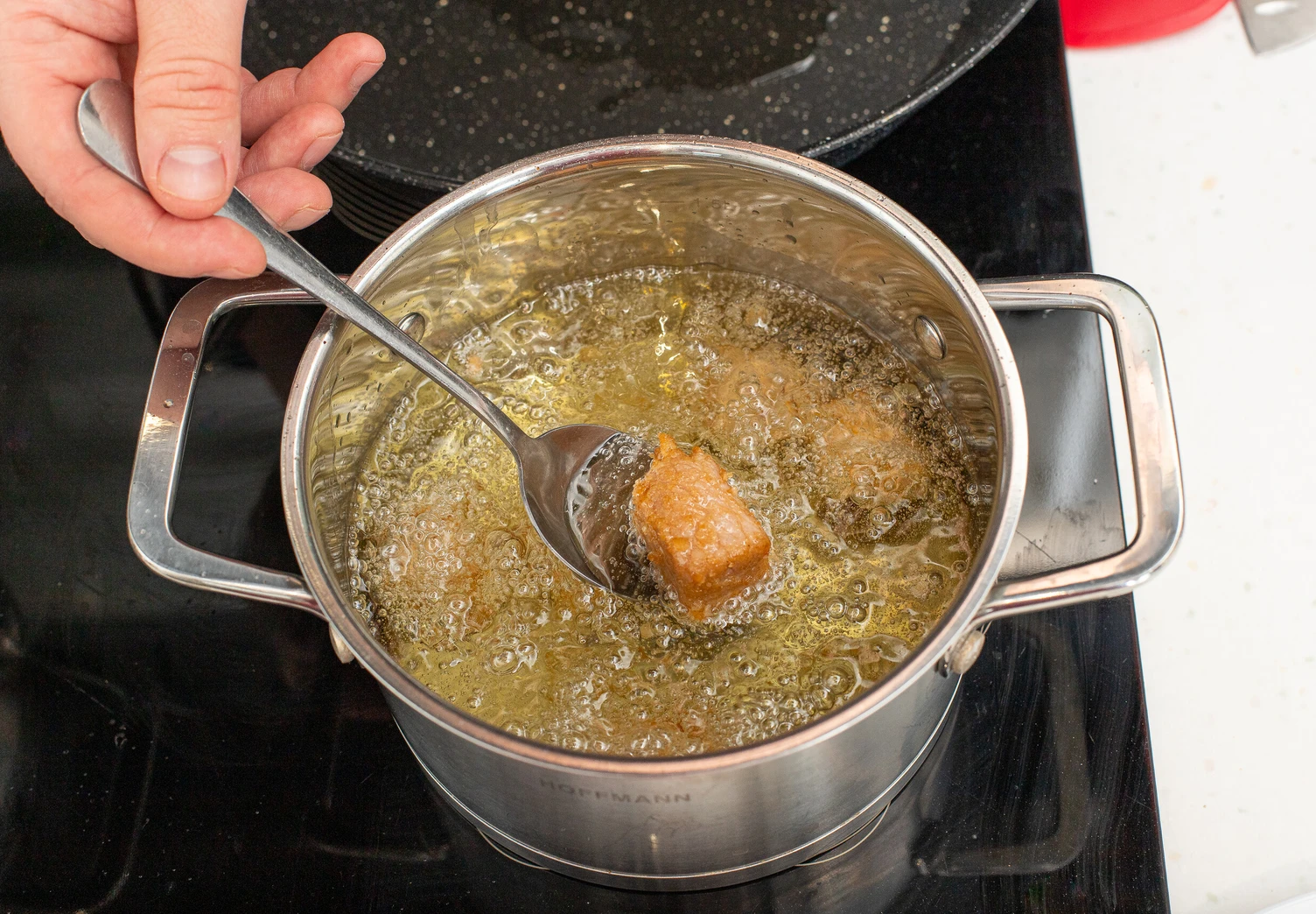 Обжарьте мясо на хорошо разогретой сковородке с большим количеством масла.