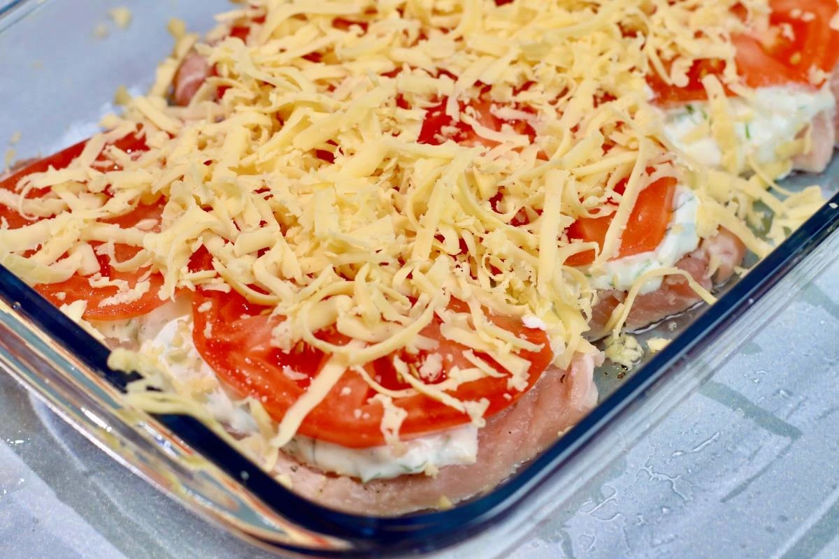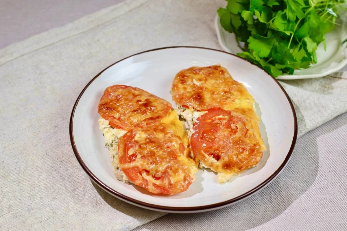 Рецепт «Свинина с сыром и помидорами в сметанном соусе»