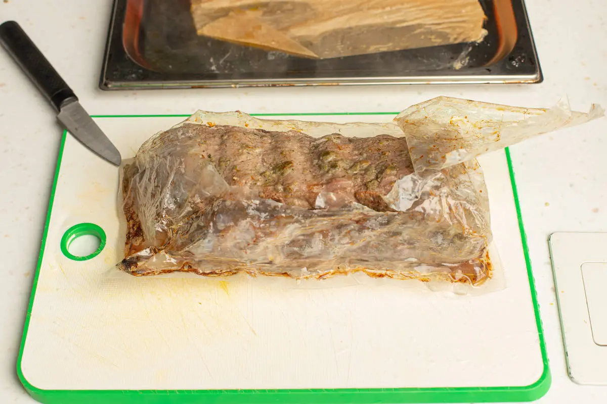 Сытное семейное блюдо. Рёбра запекаются прямо в пакете, а значит, духовка и посуда останутся чистыми.