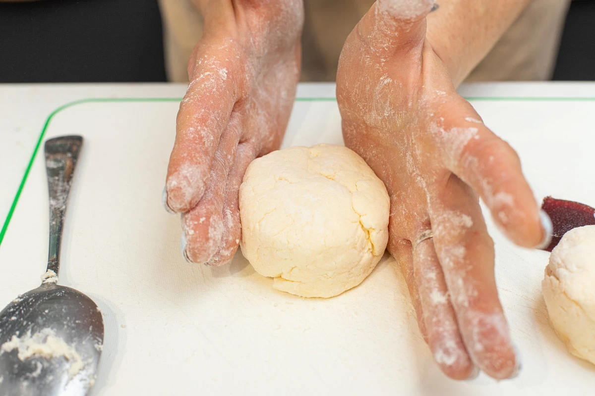 Насыпьте в тарелку 1 ст. ложку с горкой муки. Возьмите одну часть творожного «теста», обваляйте со всех сторон в муке, сформируйте шайбу.