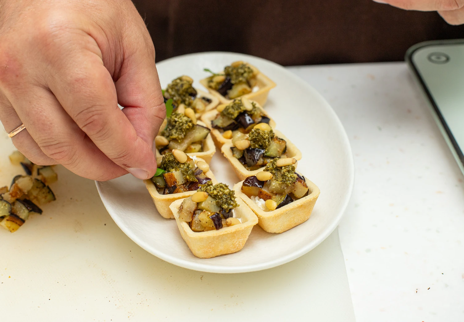 Тарталетки с баклажанами и соусом песто