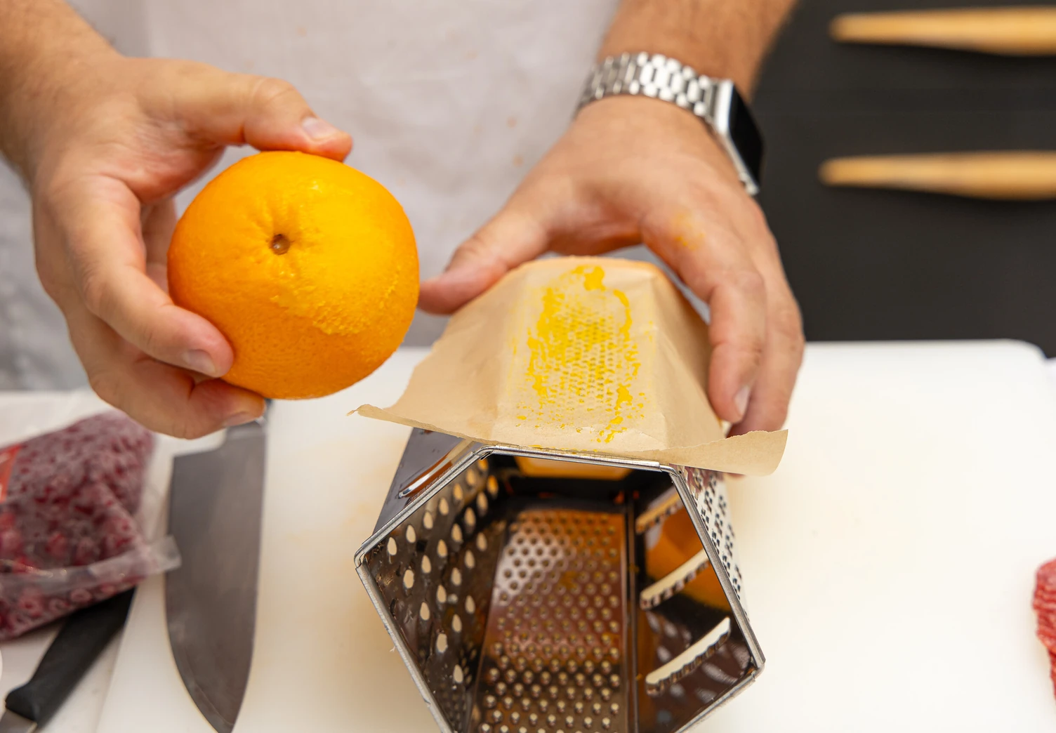 Натрите цедру апельсина на мелкой тёрке.