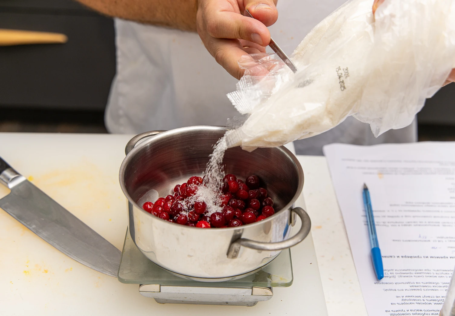 Смешайте в сотейнике клюкву, сахар, апельсиновую цедру и сок.