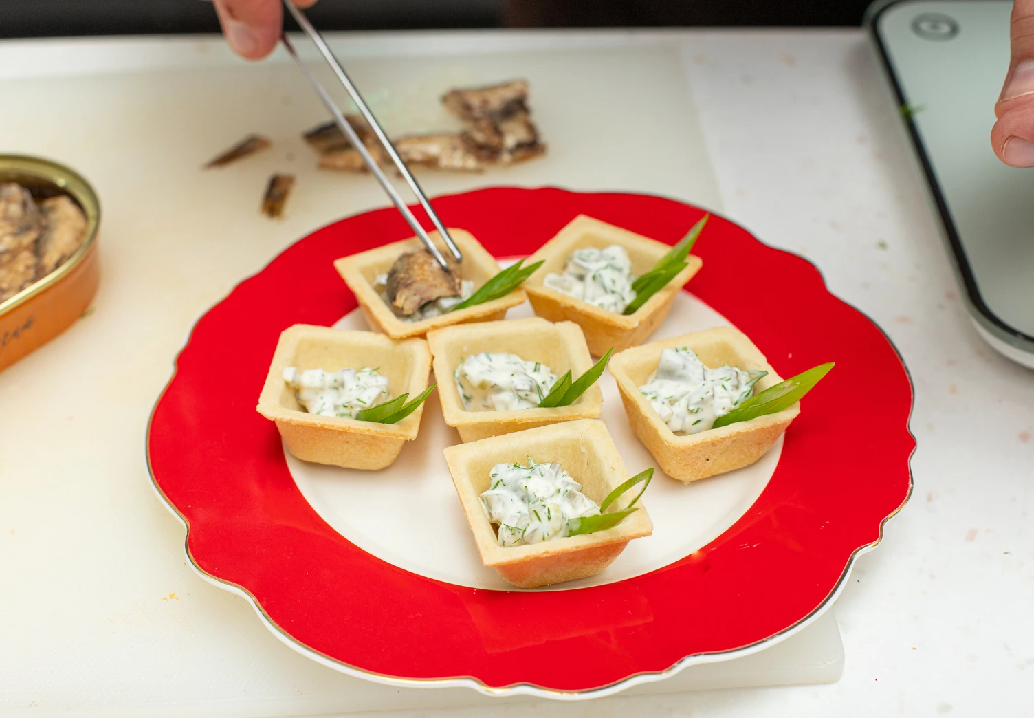 Тарталетки со шпротами и соусом тартар