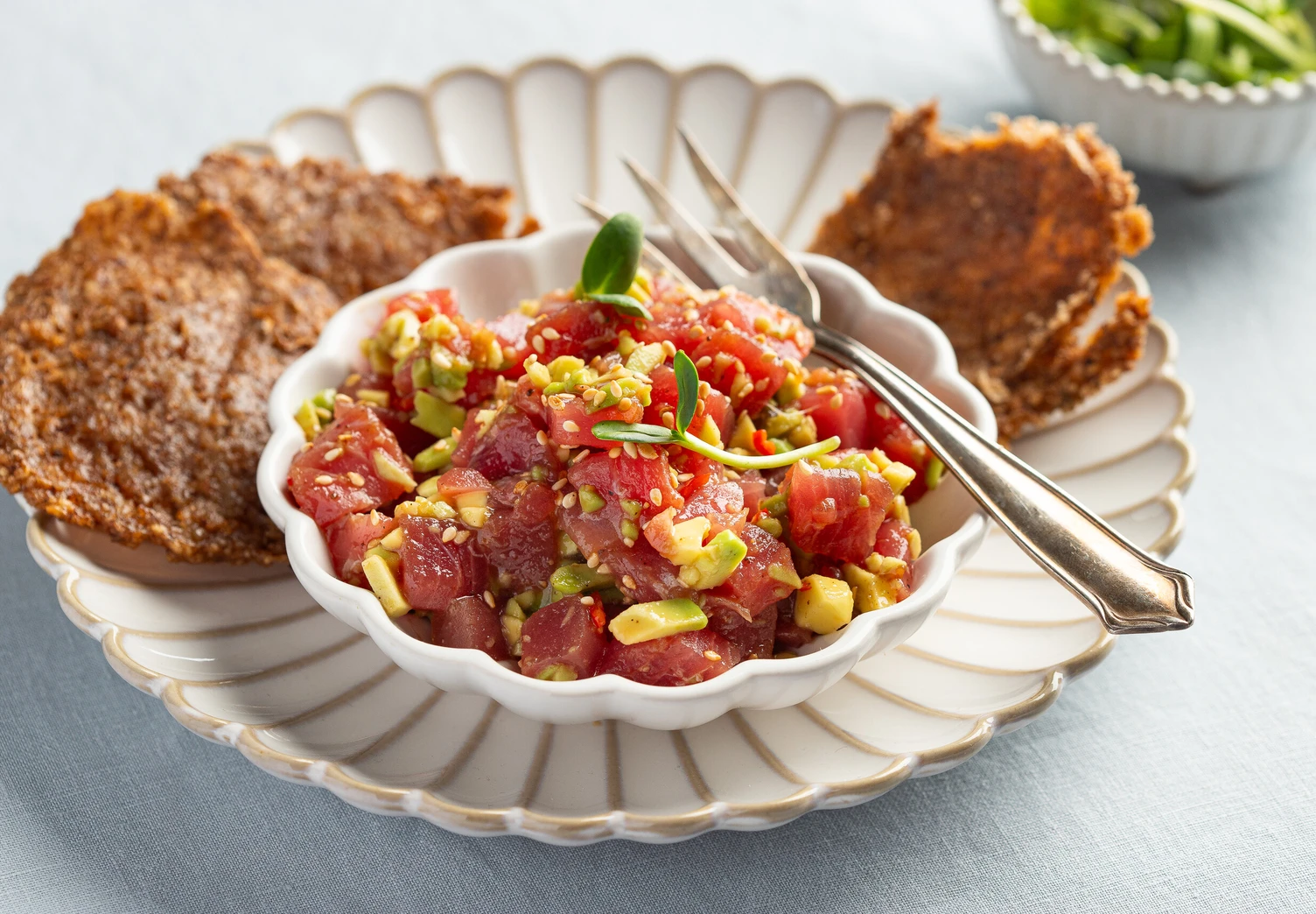Тартар из тунца с авокадо и гречневыми чипсами