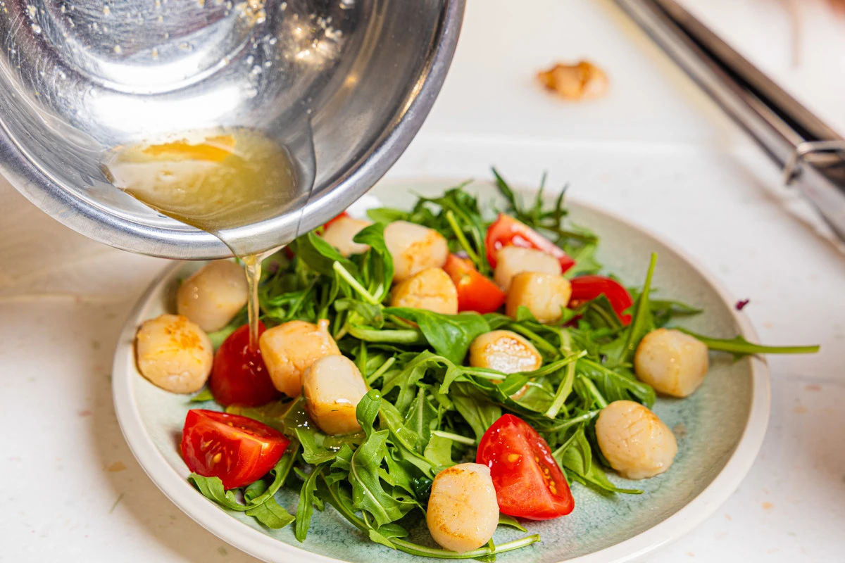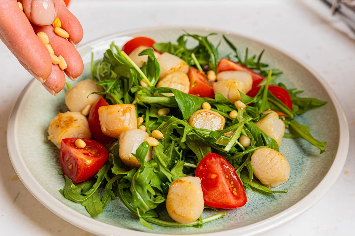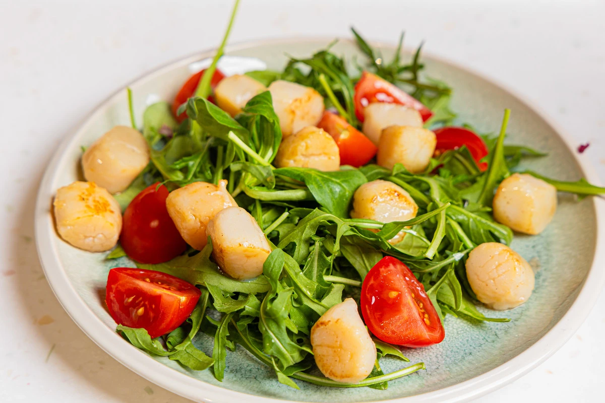 Теплый салат с гребешками