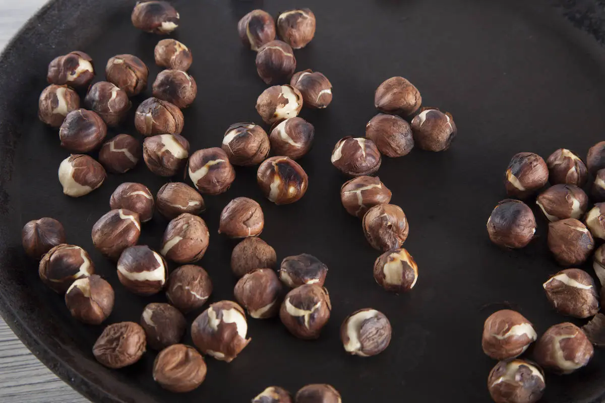Орехи поджарьте на сухой сковороде, часто помешивая, до появления приятного аромата, переложите орехи в полотенце и потрите, чтобы отделить шелуху. Очищенные орехи крупно порубите.