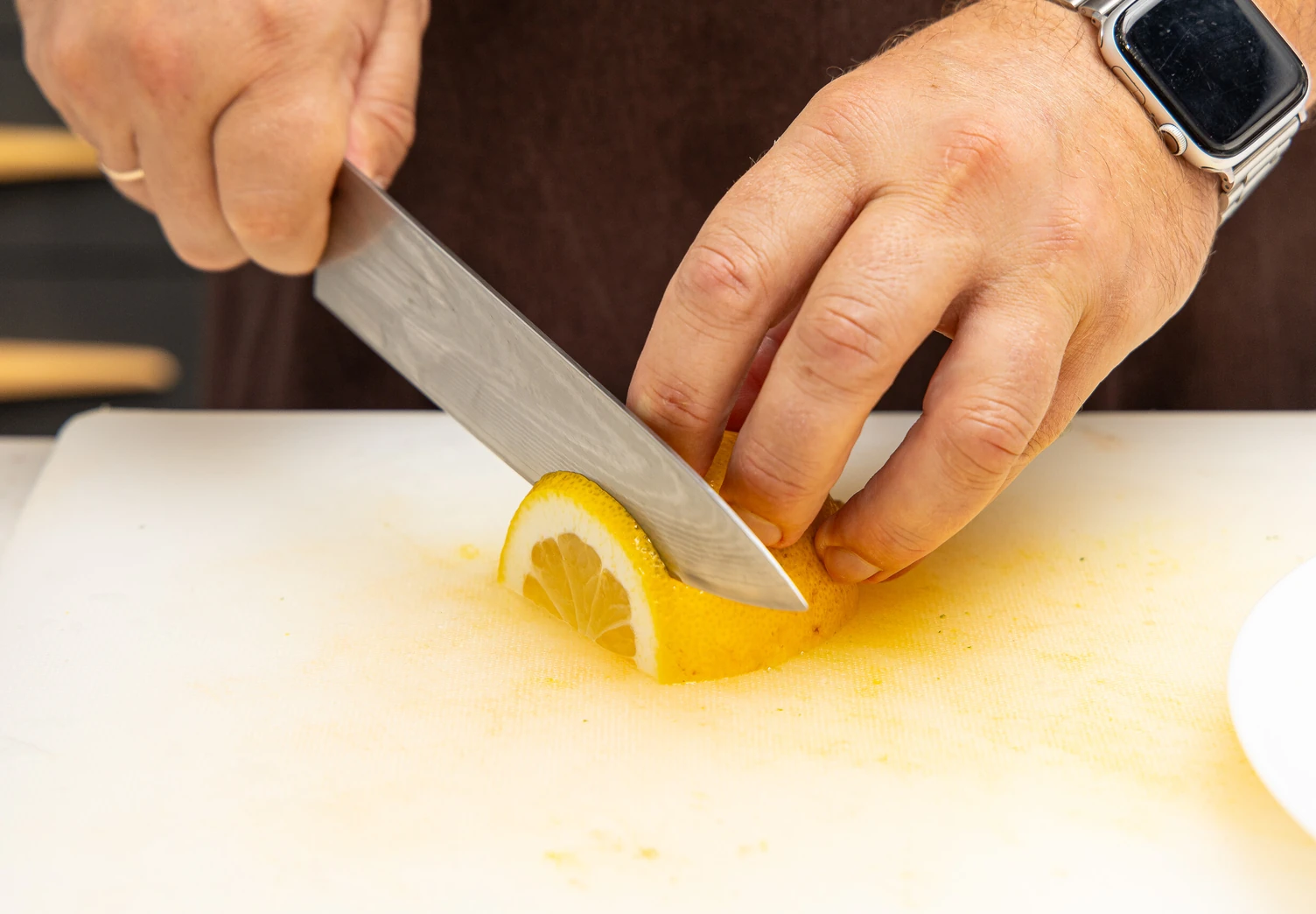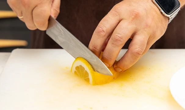 Нарежьте лимон тонкими колечками.