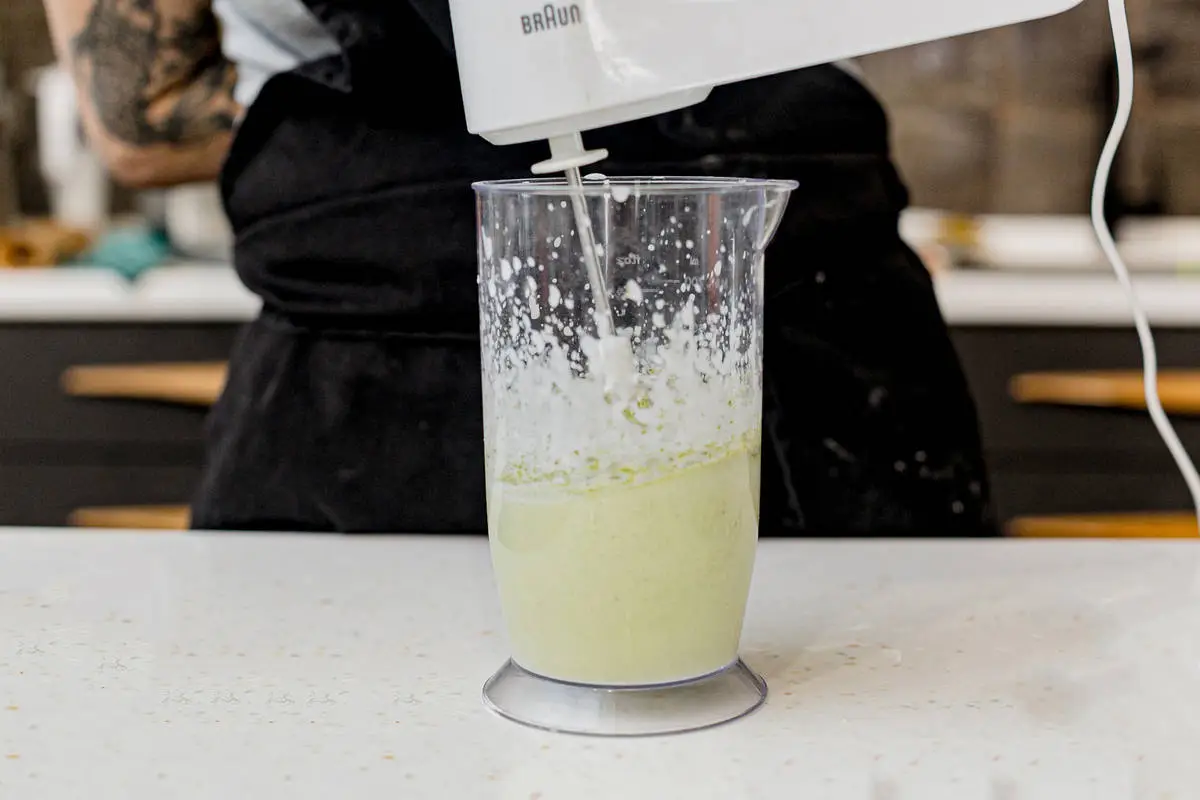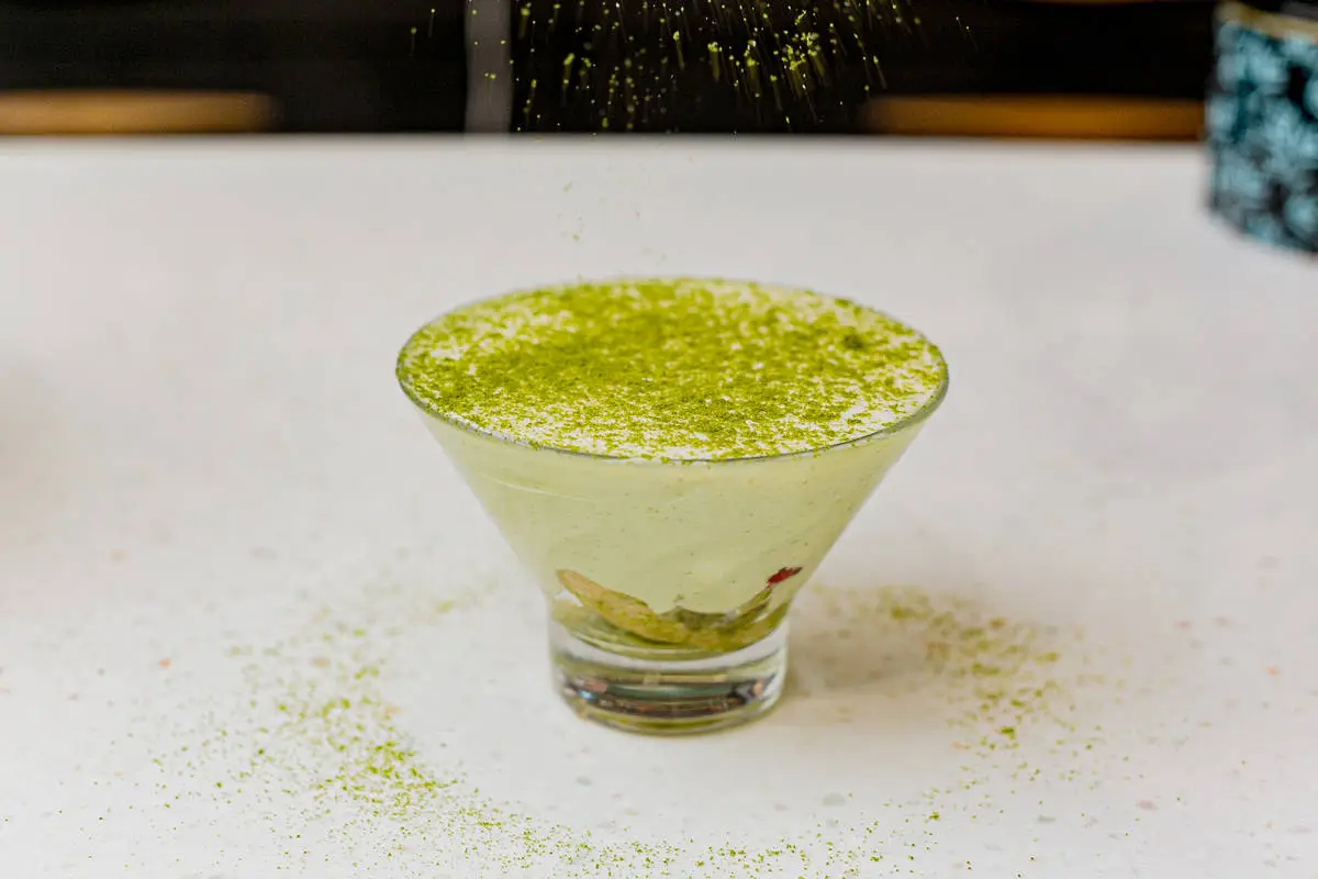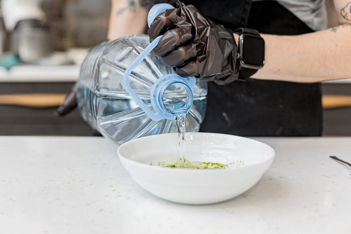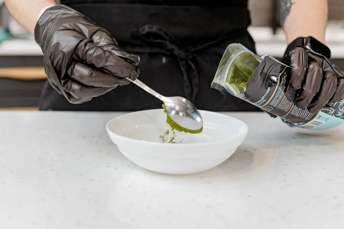 Разведите 3 ст. ложки матча в небольшом количестве прохладной воды, взбивая венчиком.