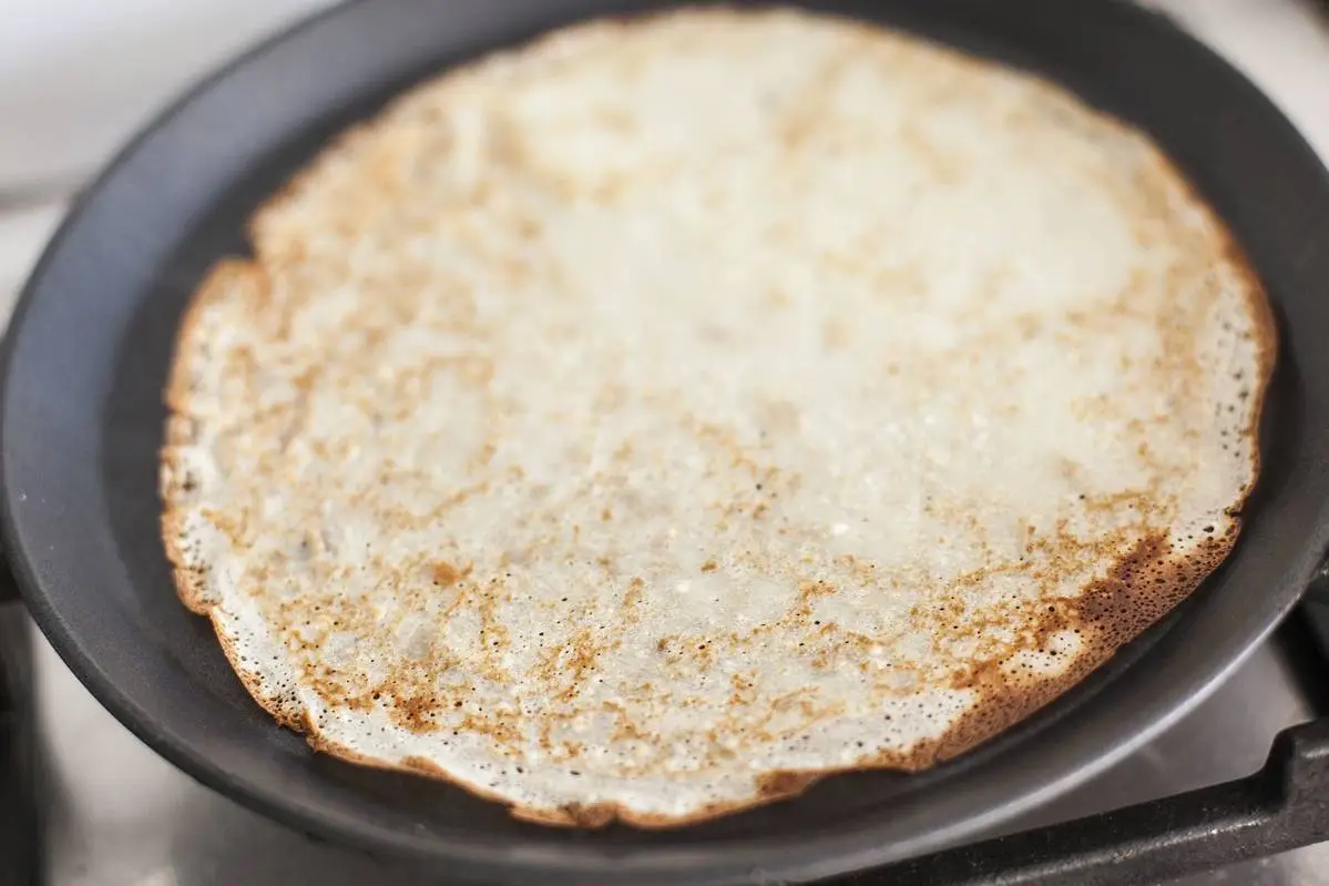 На молоке всегда получаются тонкие блины, а вот на кефире зачастую - только оладушки. Здесь есть маленький секрет — влейте в тесто кипяток! Блины не будут рваться, получатся тоненькими и дырчатыми.