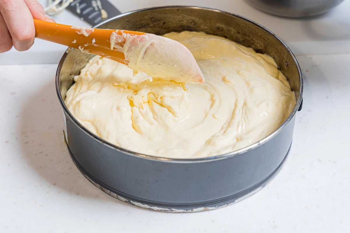 Залейте получившийся сливочный крем в форму поверх основы из печенья. Аккуратно постучите формой по столу, чтобы масса равномерно распределилась. Уберите в холодильник минимум на 4 часа.