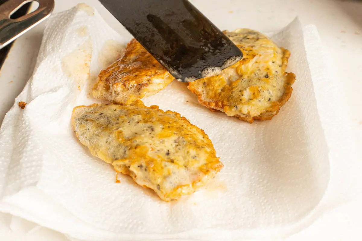 Выкладывайте рыбу на салфетку, чтобы убрать лишний жир.