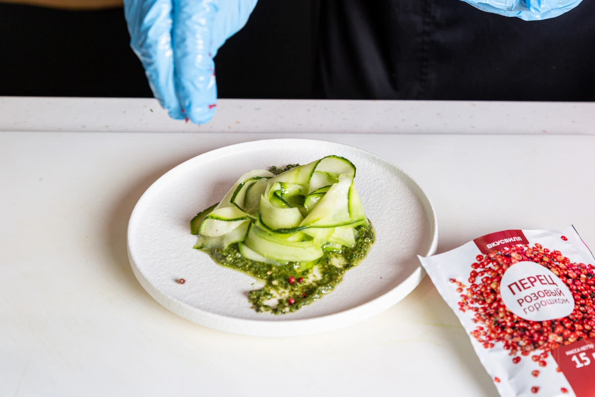 Рецепт «Цветок из маринованного цуккини с соусом песто»