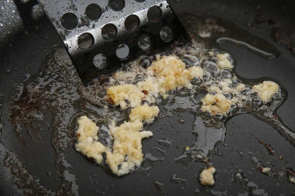 А можно пойти чуть дальше и приготовить соус для чкмерули! Цыпленка выложите на блюдо, разрежьте на 4 части и прикройте фольгой. В сковороду, в которой жарился цыпленок положите чеснок (пропущенный через чеснокодавку) и обжарьте до легкой золотистости.