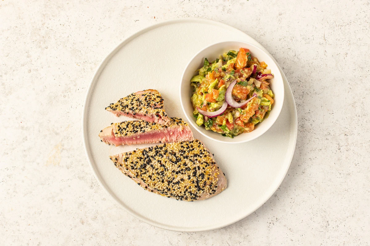 Тунец в кунжутной корочке с гуакамоле