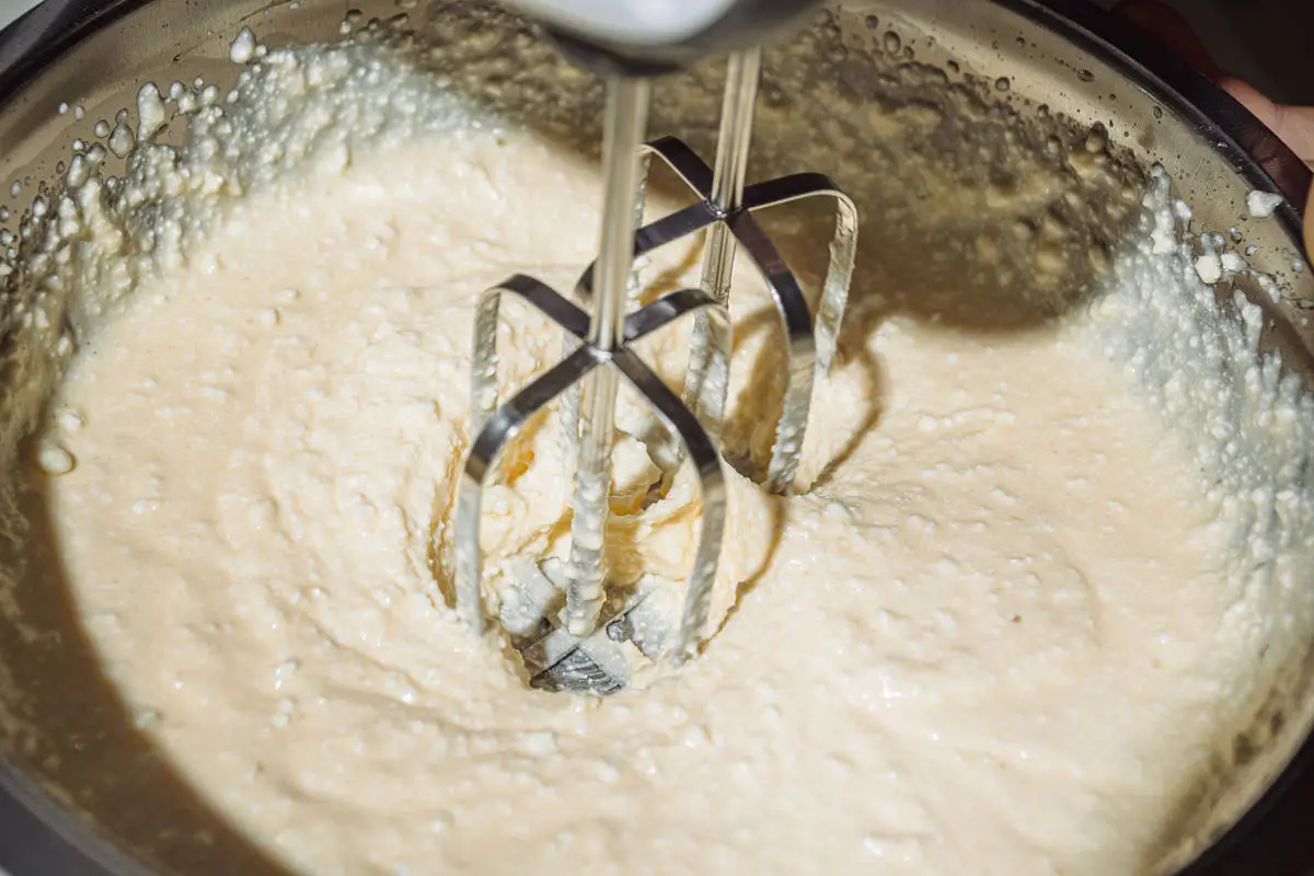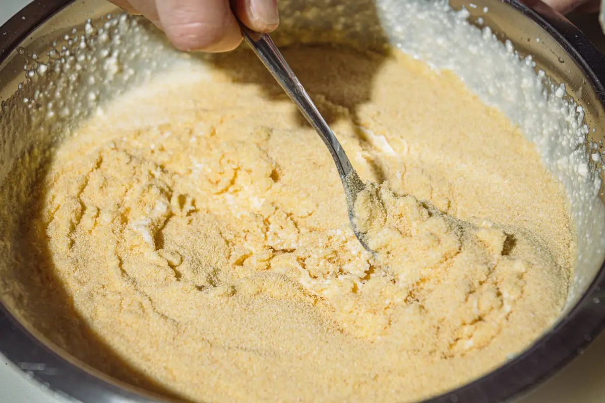Добавьте в тесто манку и соль, перемешайте и оставьте на 20 минут для набухания манки.