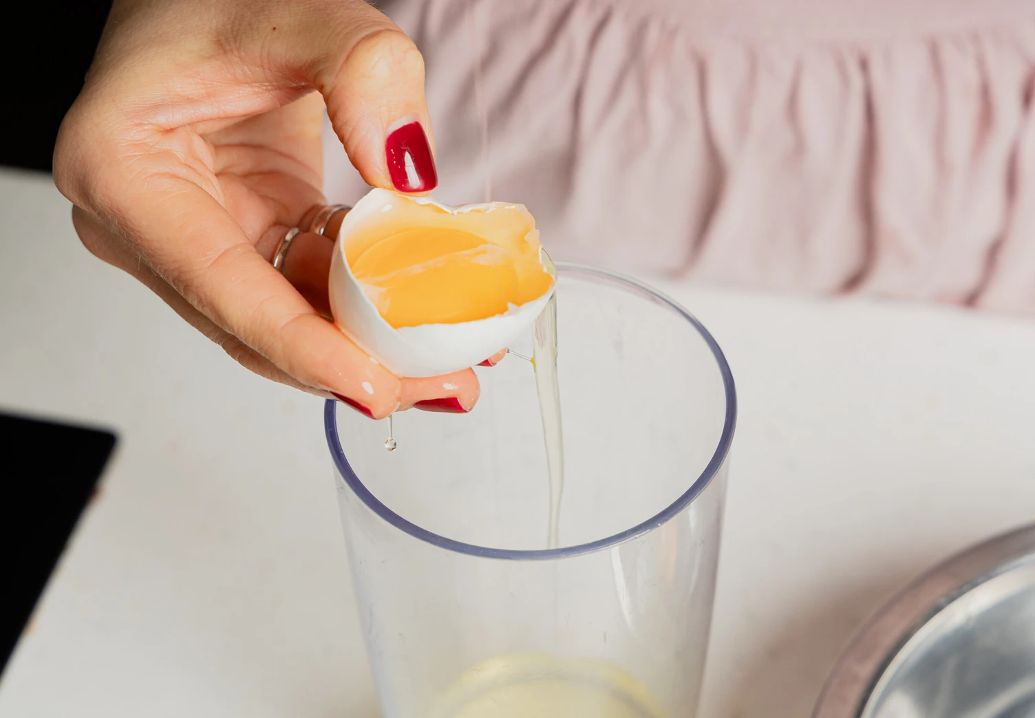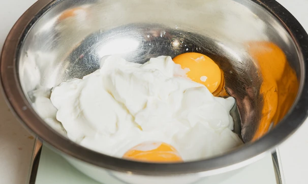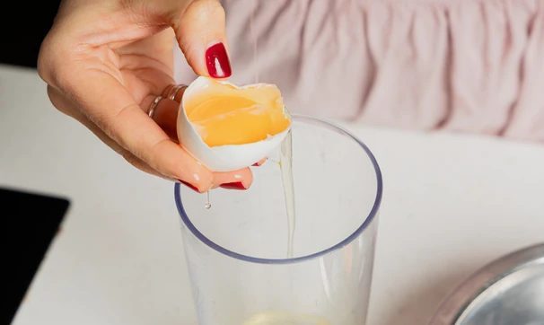 Аккуратно разделите яйца на белки и желтки. Уберите миску с белками в холодильник.