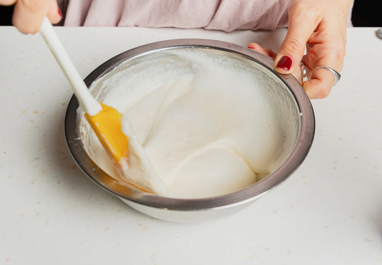 Старайтесь не перемешивать слишком активно, чтобы белки не осели.