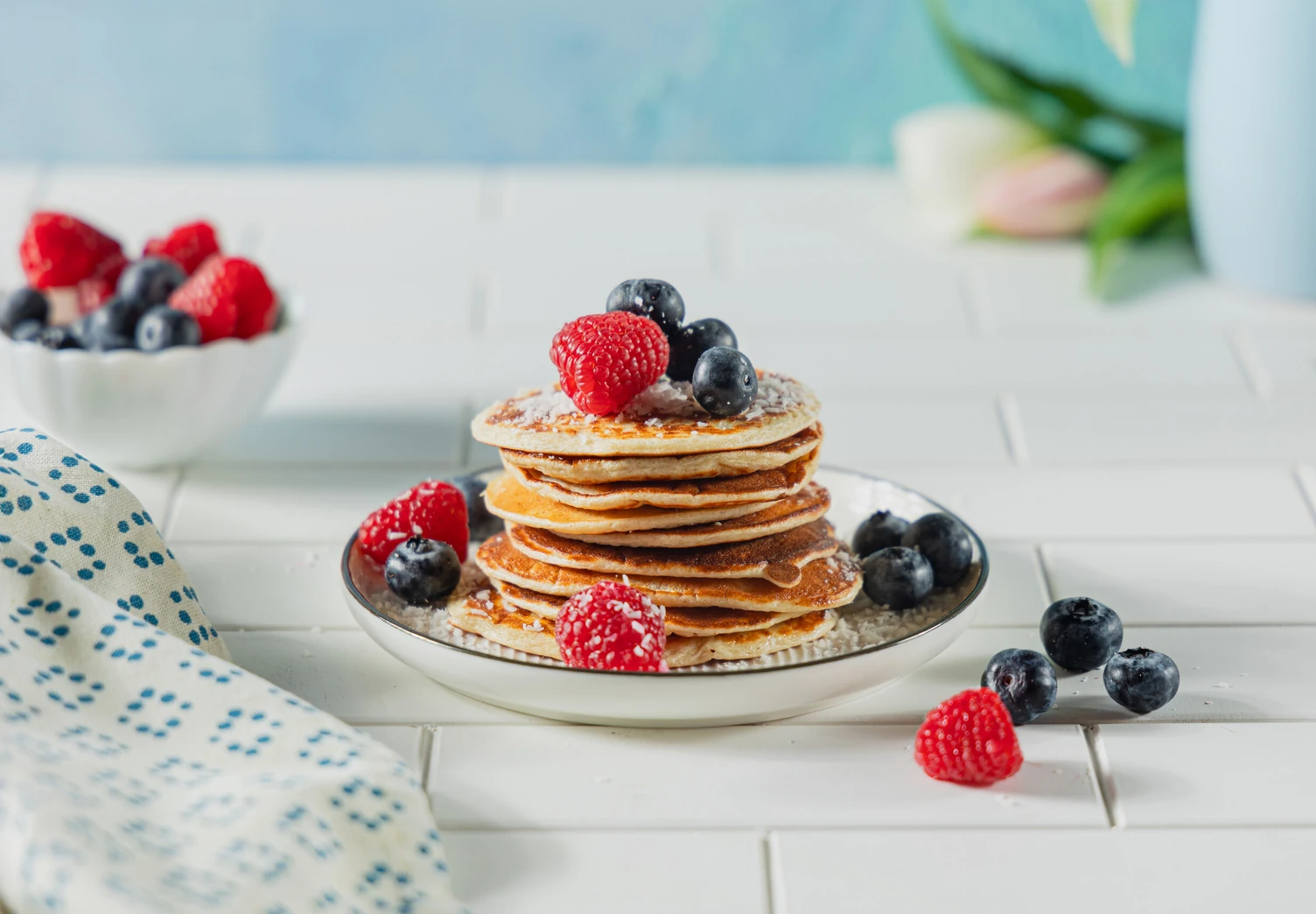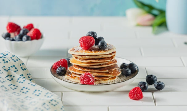 Наш редактор Оля нашла этот рецепт много лет назад, когда изучала диету по Дюкану, и с тех пор такие творожные оладьи прочно обосновались на её кухне. Ещё бы: в них много белка, и они очень просто готовятся. Если под рукой нет кокосовой стружки, замените её овсяными отрубями (в этом случае овсяную муку добавлять не нужно). Вкусно будет в любом варианте!
