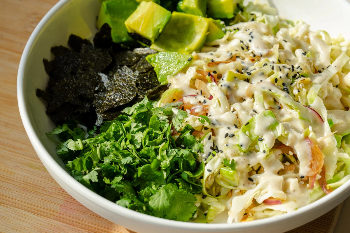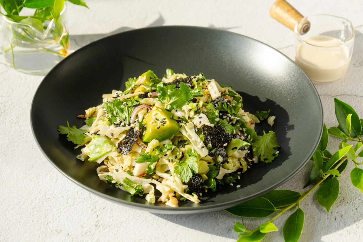 Необычный вариант салата из капусты. Оказывается, сочетание с авокадо и нори очень даже вкусное!