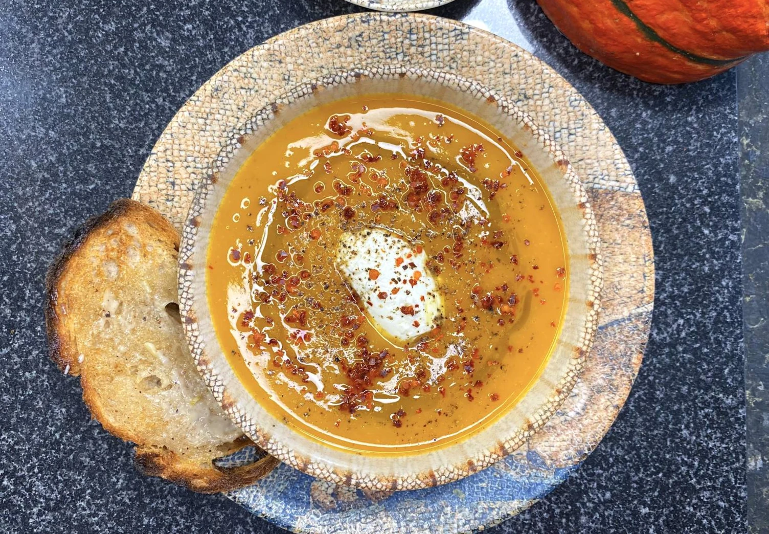Рецепт от нашей читательницы Екатерины. "Пряный суп-пюре из тыквы с имбирём, мёдом и хлопьями чили."