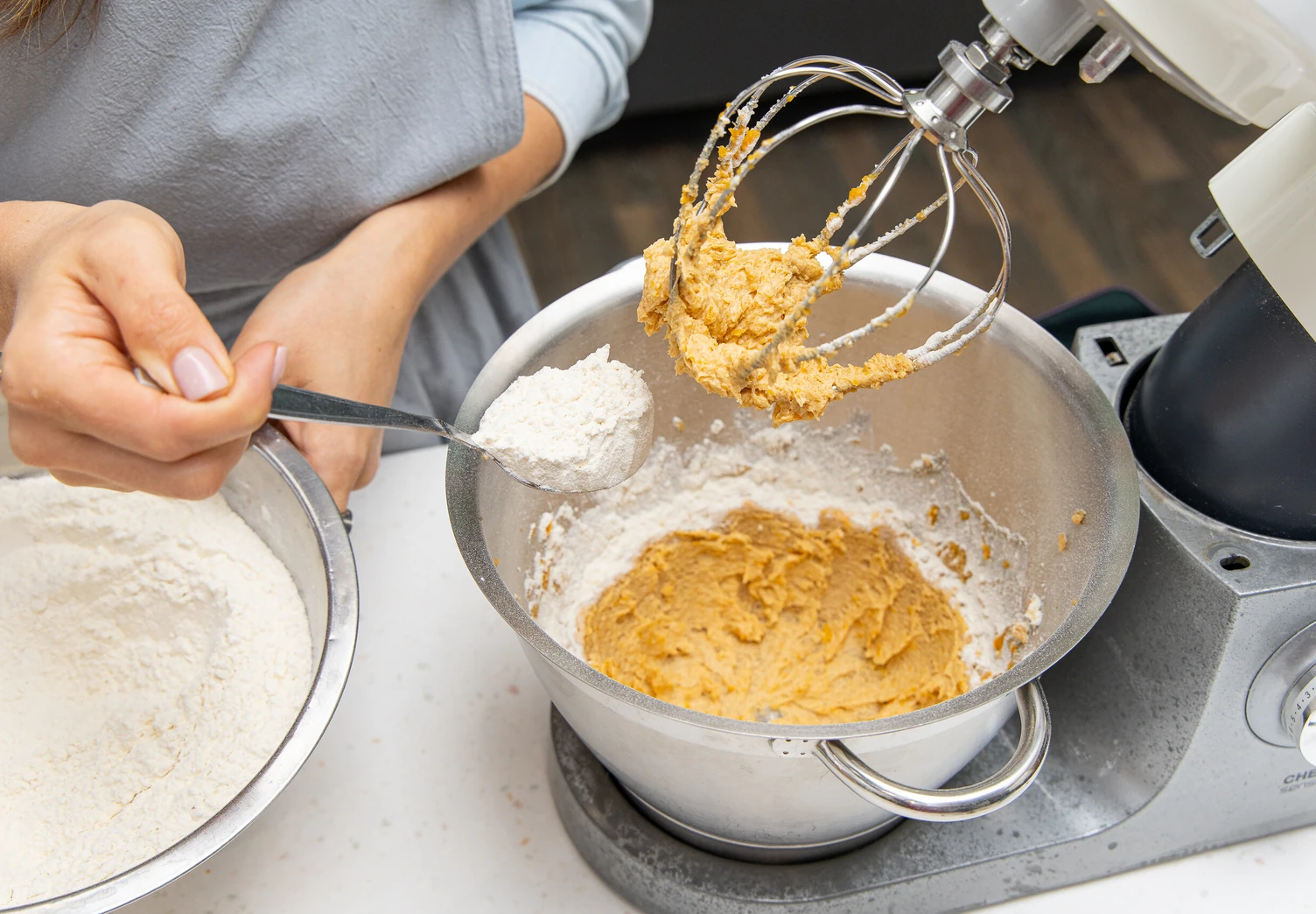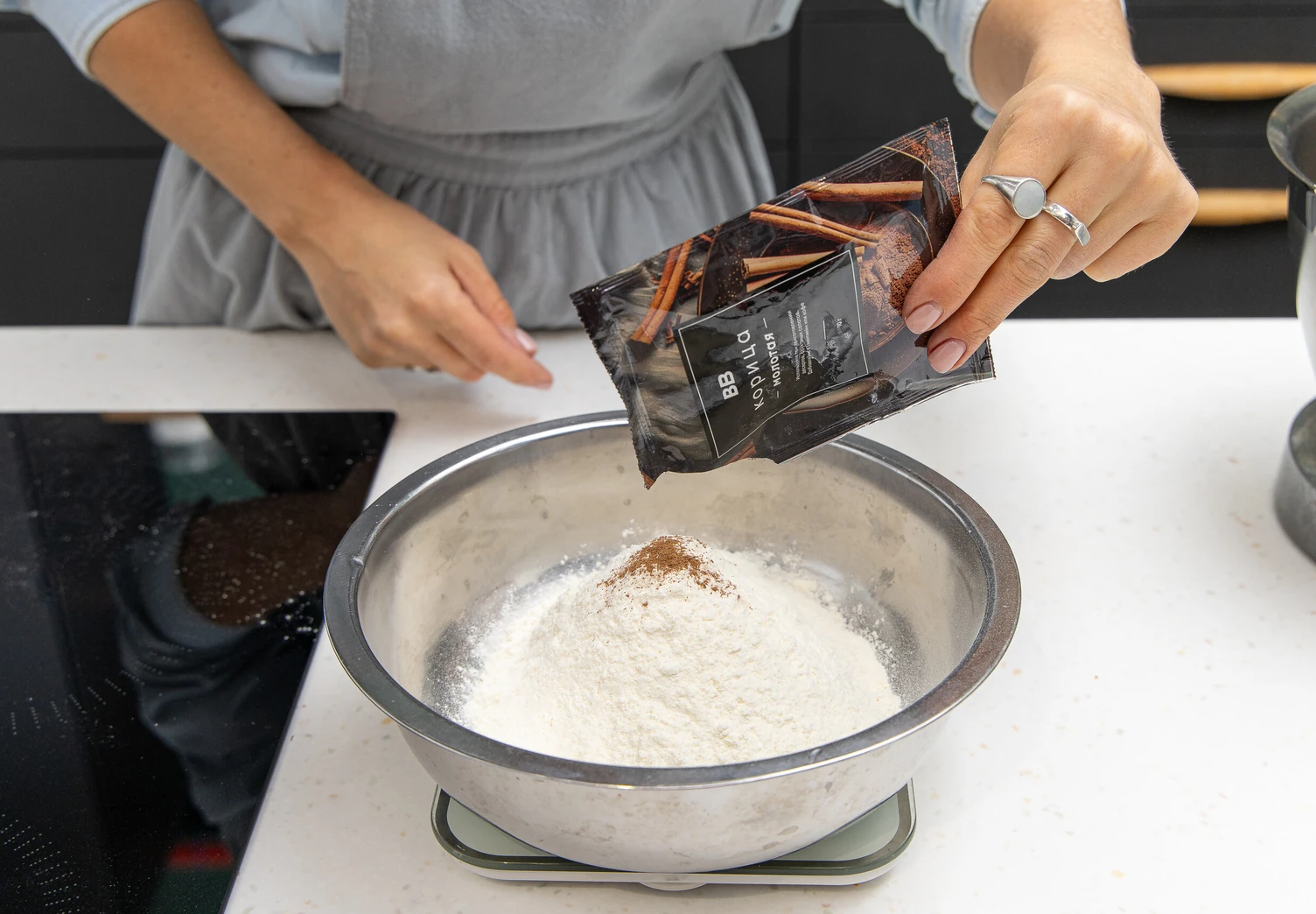 В большой миске смешайте муку, разрыхлитель и все специи.