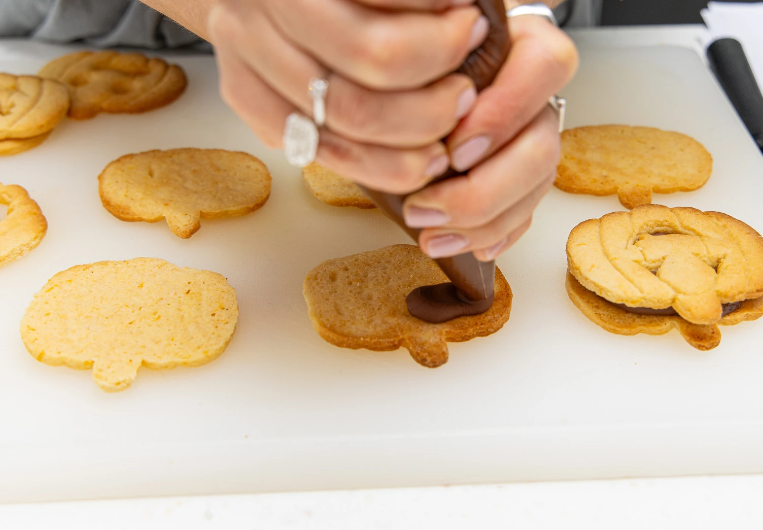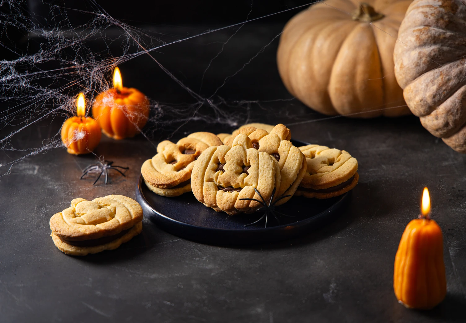 Этот рецепт — целое поле для фантазии. Приготовьте с детьми милое фигурное печенье за 15 минут, а если захочется кулинарного волшебства, превратите его в тыквы-сэндвичи с забавными рожицами.